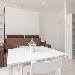 Appartamento monolocale dotato di un letto matrimoniale a ribalta di ultima generazione e di un letto singolo a scomparsa.